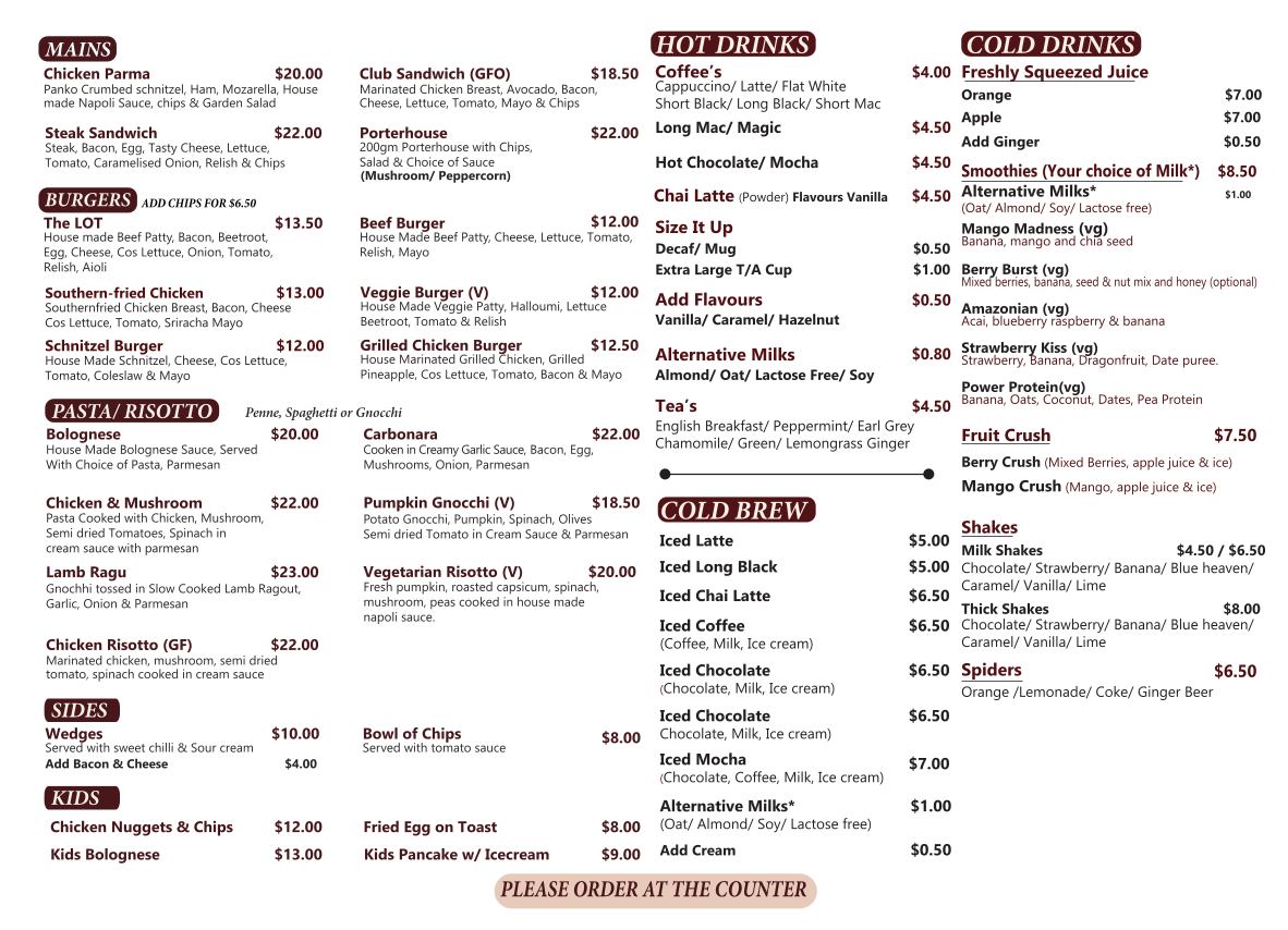 - Toasties: Elevate your lunch with choices like the savory Egg & Bacon Roll or the classic Ham & Cheese Toastie.